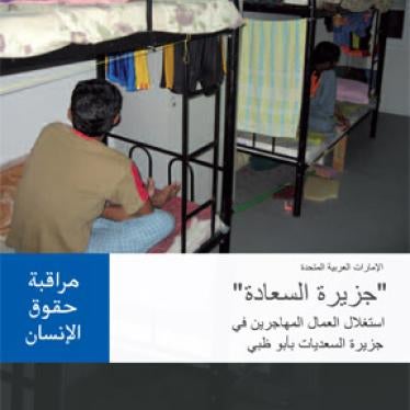 وأوضاع العمال في الإماراتالعربية المتحدة - بما في ذلك جزيرة السعديات - ما زالت مشكلة جدّية. فالعمالالمهاجرون الذين قابلتهم هيومن رايتس ووتش في زيارة جديدة لها للجزيرة فييناير/كانون الثاني 2010، قالوا بما يتفق مع نتائج سابقة، إن كل منهم دفع 2000دولار كرسوم استقدام وإن أصحاب العمل صادروا منهم جوازات سفرهم.