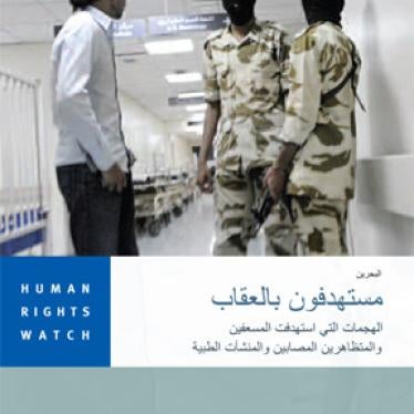 (بيروت) - قالت هيومن رايتس ووتش في تقرير أصدرته اليوم إنه ينبغي للحكومة البحرينية أن تضع على الفور حدا لحملة الاعتقالات التي تشنها ضد العاملين في المجال الطبي، وللهجمات على المرضى المصابين على صلة بالاحتجاجات الأخيرة المناهضة للحكومة. ودعت هيومن رايتس ووتش السلطات إلى التحقيق في الانتهاكات المرتكبة في حق العاملين في المجال الطبي والمرضى الذين مارسوا حقهم في حرية التعبير والتجمع، ومحاسبة المسؤولين عن الانتهاكات، والسماح للجميع بتلقي العلاج الطبي دون عوائق.