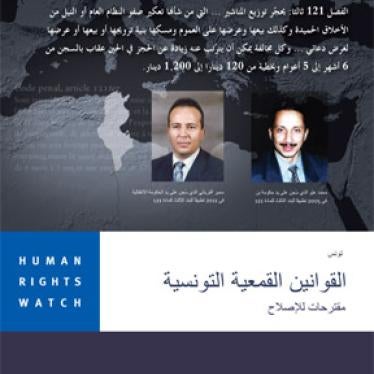 (تونس، 3 مايو/أيار 2012) ـ قالت هيومن رايتس ووتش اليوم إن أول قضية تتعلق بالتعذيب بعد خلع زين العابدين بن علي تؤكد ضرورة معالجة النقائص التي تعاني منها المنظومة القانونية في تونس والتي تحول دون المحاكمة الفعلية لجرائم التعذيب . ومن المُرجح أن تُرفع العديد من دعاوى التعذيب ضد الرئيس السابق ومساعديه، وخاصة مع إقدام ضحايا آخرين على رفع شكاوى جديدة.