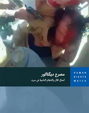 تقرير "مصرع ديكتاتور: أعمال الثأر والانتقام الدامية في سرت" الذي صدر في 50 صفحة، يعرض تفصيلاً الساعات الأخيرة من حياة معمر القذافي والظروف التي قُتل فيها. يعرض التقرير أدلة على قيام ميليشيات من مصراتة بالقبض على قافلة القذافي ونزع أسلحتهم، ثم إخضاعهم لسيطرتهم الكاملة، وتعريضهم للضرب بقسوة. ثم قاموا بإعدام 66 على الأقل من أسرى القافلة في فندق المهاري القريب من مسرح الأحداث.