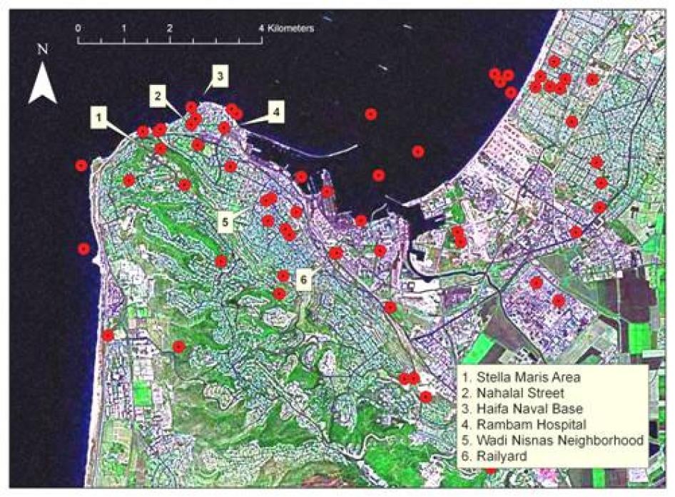 وعلى امتداد المنطقة الشمالية من البلاد، فإن الأهداف العسكرية الثابتة، مثل قواعد جيش الدفاع الإسرائيلي، تقع بالقرب من مستوطنات مدنية أو وسطها. ومقر قيادة جيش الدفاع الإسرائيلي في الشمال يقع في مدينة الصفد. والبحرية الإسرائيلية لديها مركز تدريب كبير على الشاطئ في حيفا، إلى جوار مستشفى كبير وحي من المباني السكنية قليلة الطوابق.