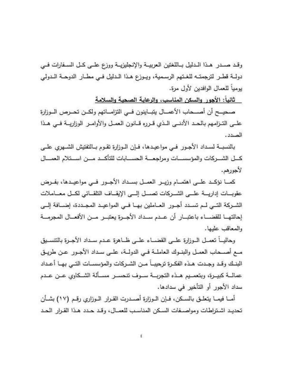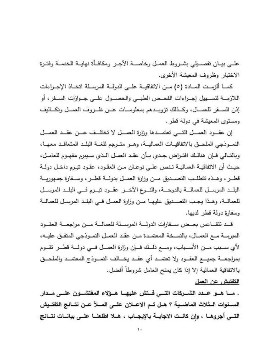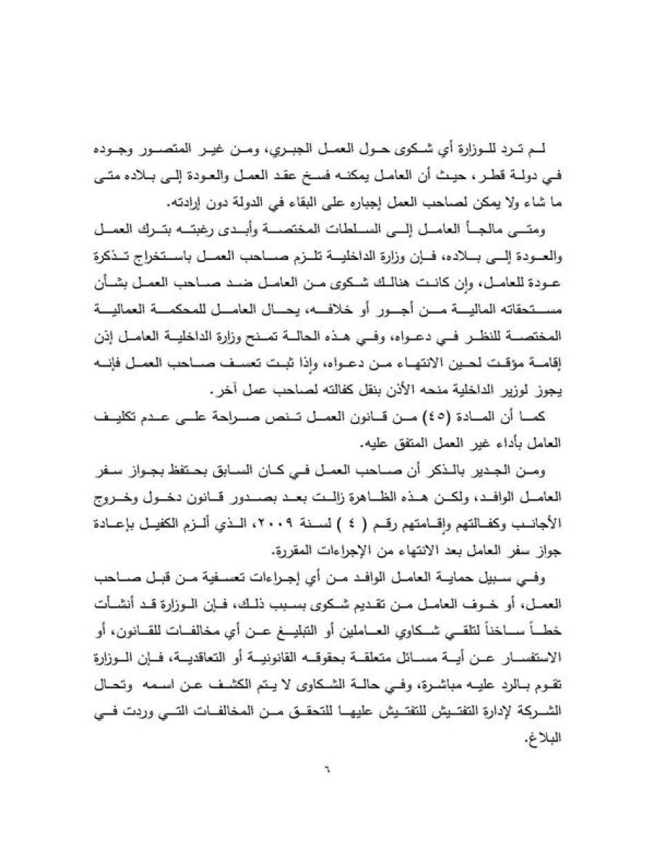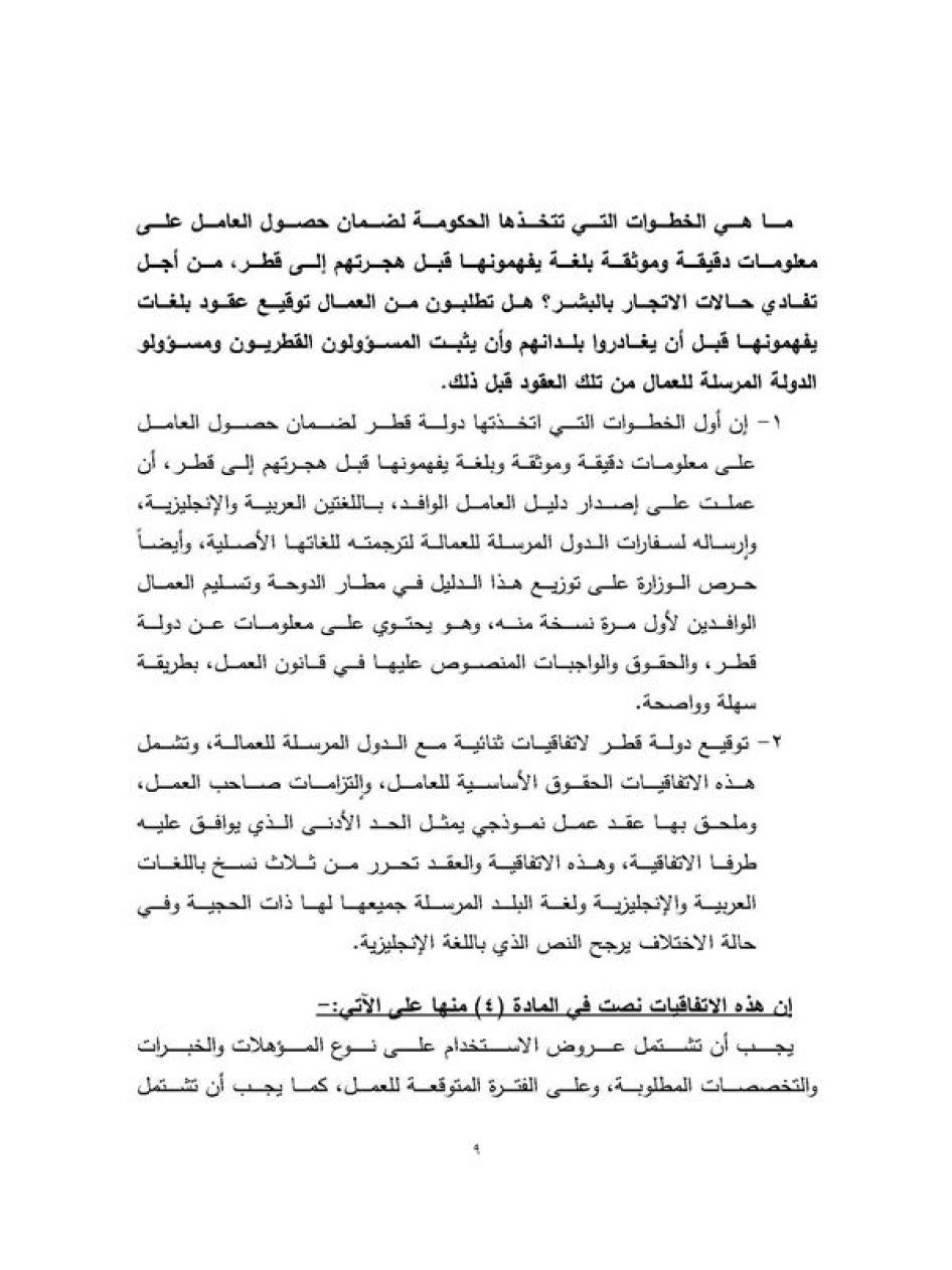 [172] رسالة من وزارة العمل القطرية، 1 نوفمبر/تشرين الثاني 2011، ص 11.