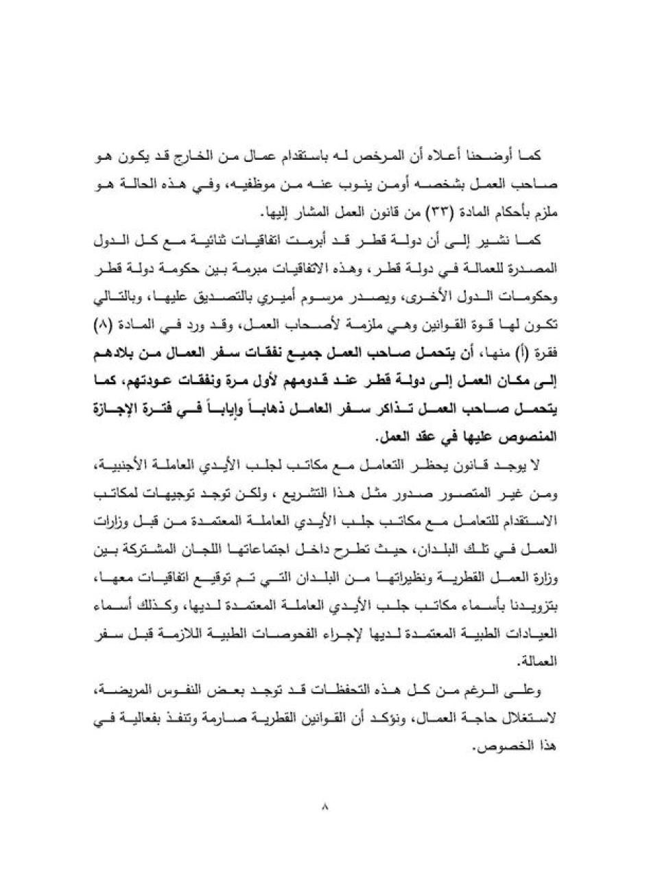 [229] رسالة من وزارة العمل القطرية، 1 نوفمبر/تشرين الثاني 2011، ص 8.
