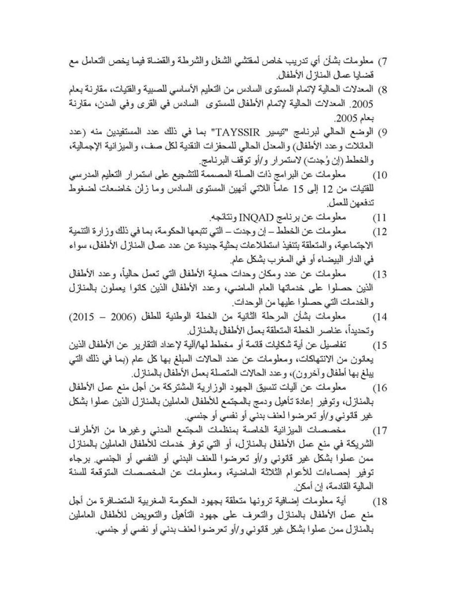 [145] انظر: Government of the Kingdom of Morocco, “Third and Fourth Periodic Report to the Committee on the Rights of the Child,” May 2012, para 39.