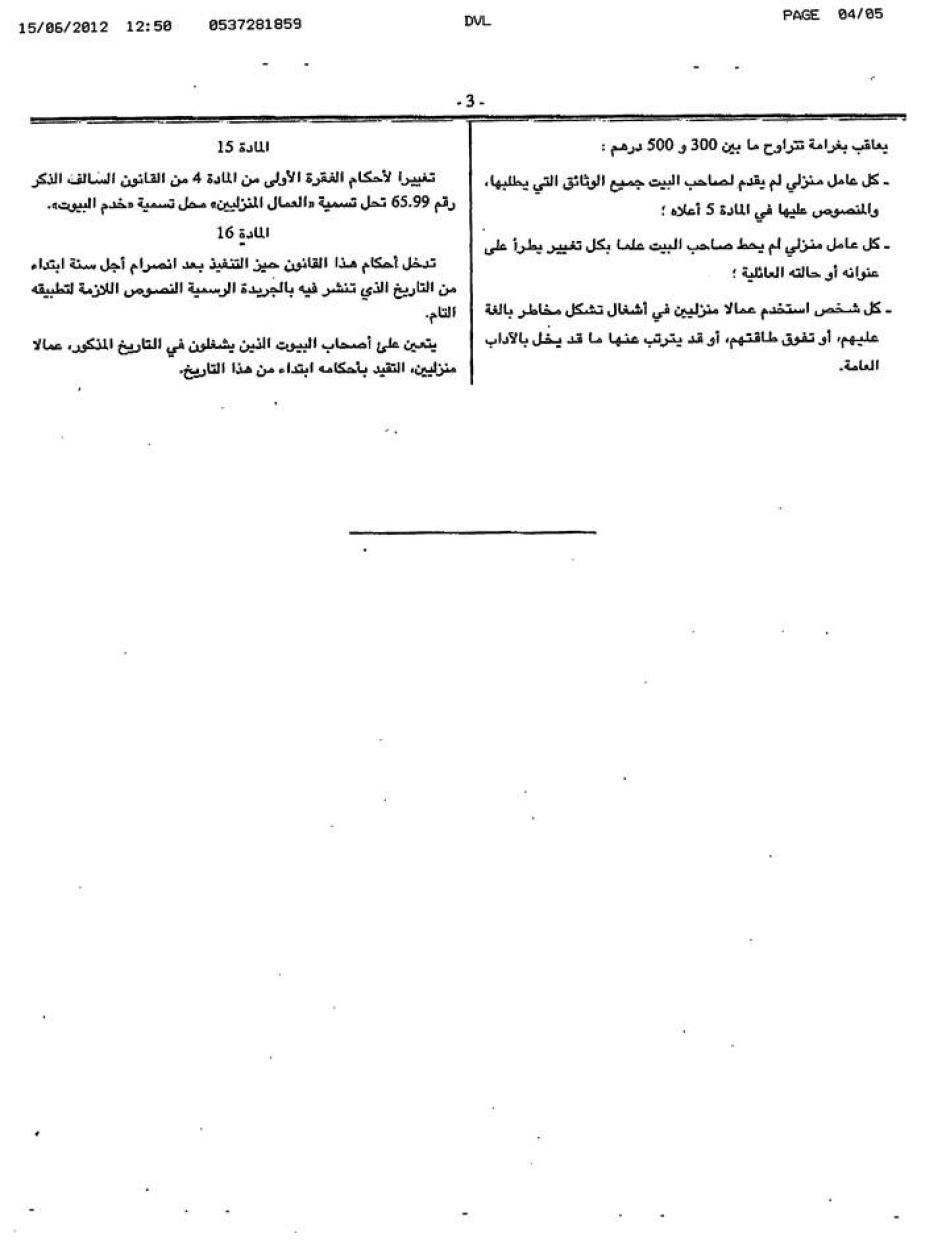 [151] انظر: Abderrafii Aloumliki, “Al Jadida: She killed her 10-year old maid and got 10 years in prison,” Maghress, April 17, 2012, available at http://www.maghress.com/fr/aujourdhui/87580.