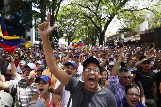 Manifestantes antigubernamentales protestan contra el gobierno de Nicolás Maduro en la ciudad de Caracas, Venezuela, el 3 de marzo de 2014.