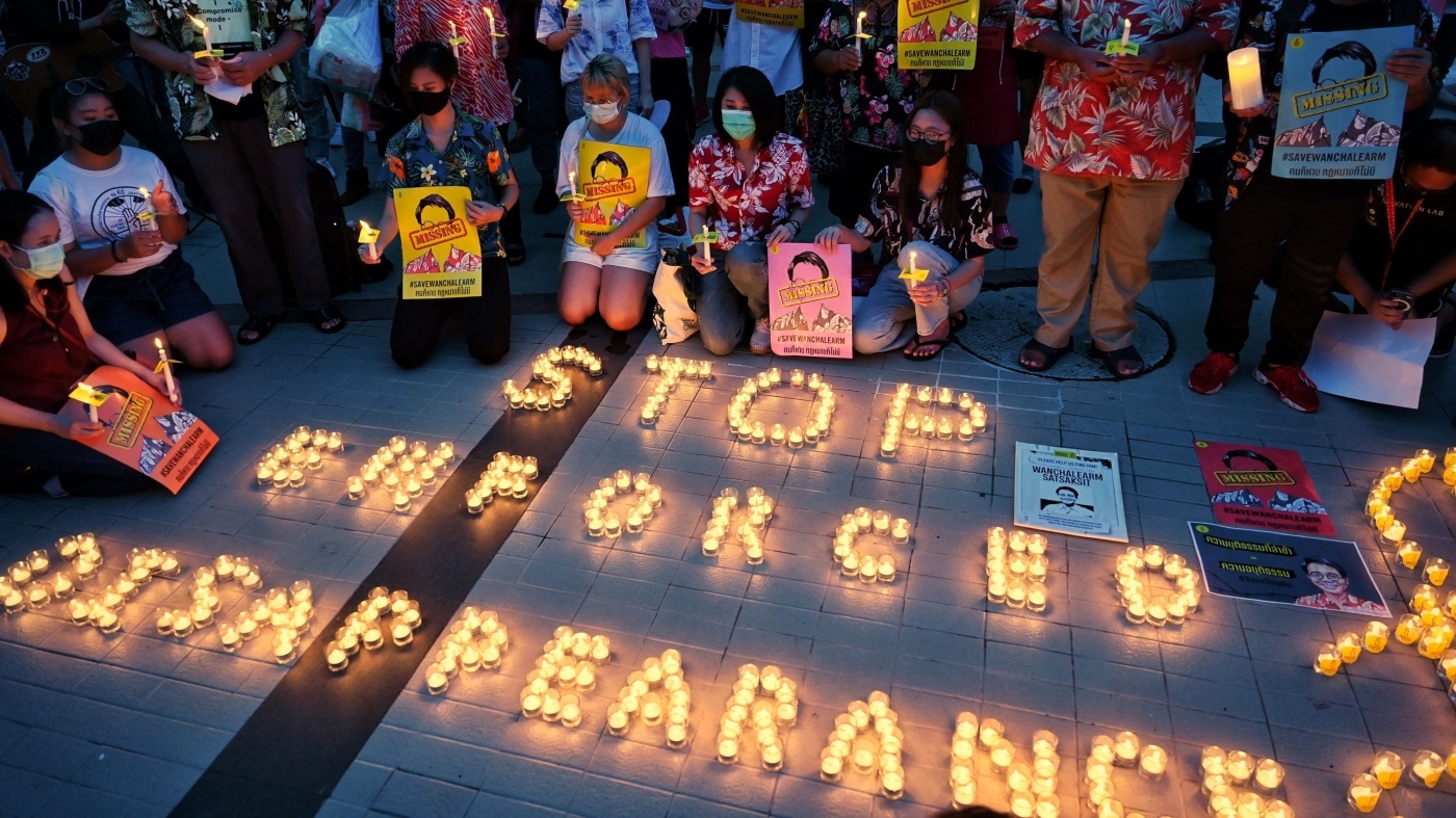 Placards with Wanchalearm’s face, calling for his safe return, became a prominent feature in Thailand’s 2020 mass protests when thousands filled the streets in Bangkok and other cities calling for democracy and the reform of the monarchy.