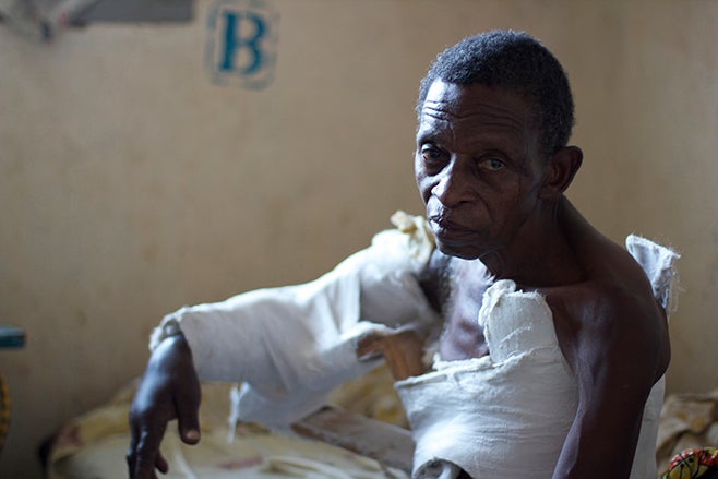 Paluku Waitswalo, âgé de 65 ans, a été attaqué par des combattants non identifiés armés de machettes près du village de Maymoya dans la province du Nord-Kivu, en RD Congo, le 6 octobre 2014.