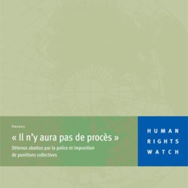 Le rapport de 37 pages, intitulé « 'Il n’y aura pas de procès' : Détenus abattus par la police et imposition de punitions collectives », est basé sur des douzaines d’entretiens avec des familles de victimes, des témoins et autres personnes. Human Rights Watch a déterminé que plusieurs des 20 détenus tués ont été accusés de crimes liés à des rescapés du génocide ou à d’autres personnes impliquées dans le processus gacaca, destiné à rendre justice pour le génocide. Les autres étaient accusés de meurtre, de viol ou de vol.