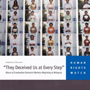 Le rapport de 105 pages, intitulé « ‘They Deceived Us at Every Step’: Abuse of Cambodian Domestic Workers Migrating to Malaysia » (« ‘Ils nous ont trompées à chaque instant’ : Abus contre les travailleuses domestiques migrantes en Malaisie »),documente les expériences des travailleuses domestiques cambodgiennes au moment du recrutement, durant leur période de travail à l’étranger et à leur retour chez elles. Ce rapport s’appuie sur80 entretiens menés auprès de travailleuses domestiques migrantes, de membres de leurs familles, d’autorités gouvernementales, d’organisations non gouvernementales et d’agents de recrutement. Il révèle les nombreux obstacles qui empêchent les femmes et les filles maltraitées d’obtenir justice et réparation tant au Cambodge qu’en Malaisie.