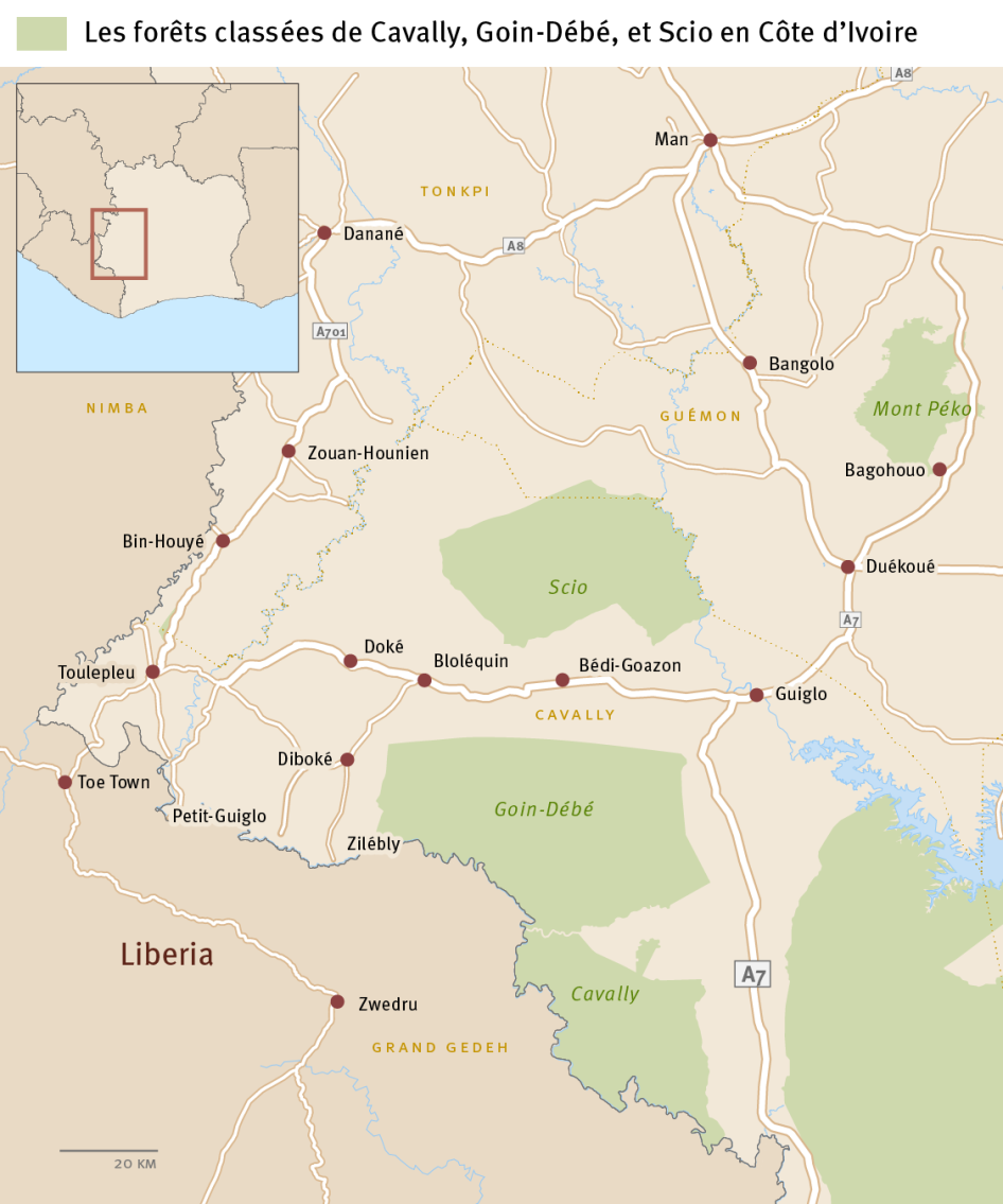 Des autorités gouvernementales et des dirigeants communautaires ont également déclaré que le conflit armé de 2002-2003 en Côte d’Ivoire ainsi que la crise postélectorale de 2010-2011 ont rendu difficile, et souvent dangereux, pour la SODEFOR et les forces de sécurité ivoiriennes d’opérer dans les forêts classées, facilitant une nouvelle vague d’occupations. Dans certains endroits, notamment des parties de Cavally, de Goin-Débé et de Scio, des groupes armés ont profité du vide sécuritaire pour prendre par la force le contrôle de vastes sections de forêt classée et pour vendre des étendues de terre aux agriculteurs.