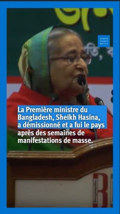 « La démission de Sheikh Hasina, après près de 15 ans d’autoritarisme croissant, apporte un nouvel espoir de justice et de réforme démocratique au Bangladesh », a déclaré Meenakshi Ganguly, directrice adjointe de la division Asie à Human Rights Watch. « Le gouvernement intérimaire devrait saisir cette occasion pour réorienter le pays, vers les principes d’un État de droit doté d’institutions indépendantes pouvant garantir la justice aux victimes. »