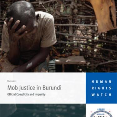 (ブジュンブラ)-ヒューマン・ライツ・ウォッチ及びブルンジのNGO「人権と被拘禁者保護協会」(Association for the Protection of Human Rights and Detained Persons 、APRODH)は、本日発表した報告書で、アフリカ・ブルンジでおきた刑事事件の容疑者への一般民衆による暴力制裁の結果、2009年中に少なくとも75名が殺害されたと明らかにした。多くの場合、政府関係当局も、暴力を容認していた。ブルンジ政府は、こうした私的な暴力制裁に対する当局関係者の関与を禁止するとともに、暴力事件関係者の刑事責任を問うべきである。