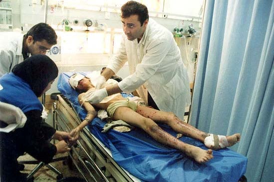 A young boy is being treated at the Jenin hospital moments after he and his friend were wounded in an explosion in the Jenin refugee camp. His friend died the next morning. The Jenin refugee camp was strewn with leftover Palestinian explosives and unexploded Israeli ordinance after the attack, causing additional injuries and deaths. (c) 2002 Peter Bouckaert/Human Rights Watch << Previous | Index | Next >> MORE ON: Israel, the Occupied West Bank and Gaza Strip, and Palestinian Authority Territories |