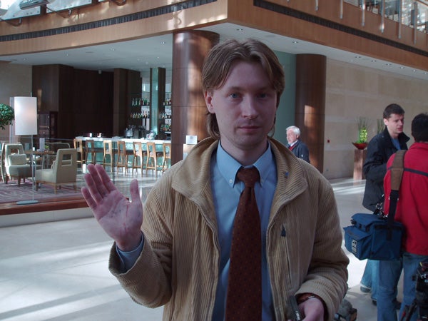 Nikolai Alexeyev, Pride organizer, after his release, showing scars on his hand. © 2006 Human Rights Watch.