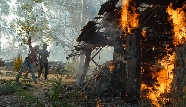 Militants burn down Shia houses on August 26, 2012, in the village of Nangkernang in Sampang regency, Madura Island. Hundreds of Sunni militants associated with the Ulema Consensus Forum torched around 50 Shia homes that day, killing one man and seriously injuring another, as several police officers looked on.