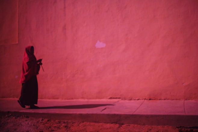 A Somali woman walks alone in central Mogadishu.