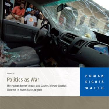 The 55-page report, “Politics as War,” is based on a two-week research mission that included interviews with victims, politicians, gang leaders, and law enforcement officials. The report found that Rivers’ gangs have grown powerful and violent through ties to influential politicians and because of the impunity long accorded them by political leaders and law enforcement agencies.
