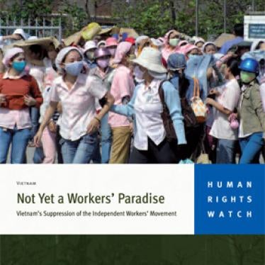 The 32-page report, "Not Yet a Workers' Paradise: Vietnam's Suppression of the Independent Workers' Movement," documents the Vietnamese government's crackdown on independent trade unions and profiles labor rights activists who have been detained, placed under house arrest, or imprisoned by the Vietnamese government in violation of international law. The report calls on donor governments and foreign firms investing in Vietnam to press the government to treat workers properly.