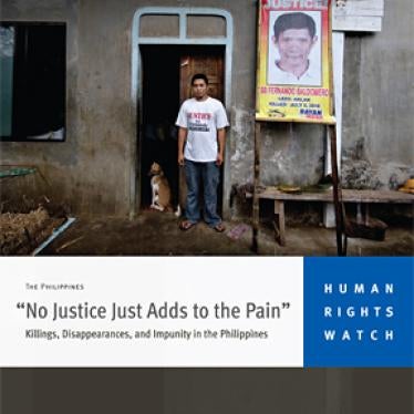 The 98-page report, "‘No Justice Just Adds to the Pain': Killings, Disappearances, and Impunity in the Philippines," details strong evidence of military involvement in seven killings and three enforced disappearances of leftist activists since President Benigno Aquino III took office on June 30, 2010.