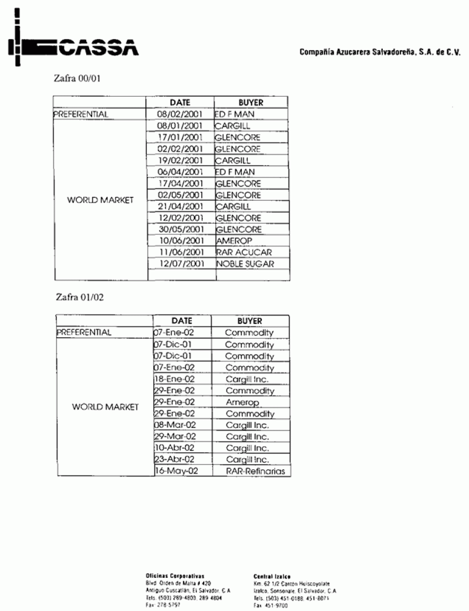 [232] Asociacin Azucarera de El Salvador, "Mercados," available at http://www.asociacionazucarera.com/ mercados.asp (viewed October 15, 2003).