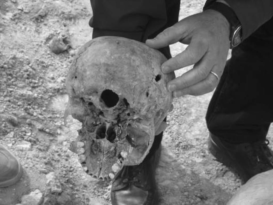Skull of a woman with a single gunshot wound, mass grave near Hadhar, south of Mosul. 2003 Eric Stover/Human Rights Watch
