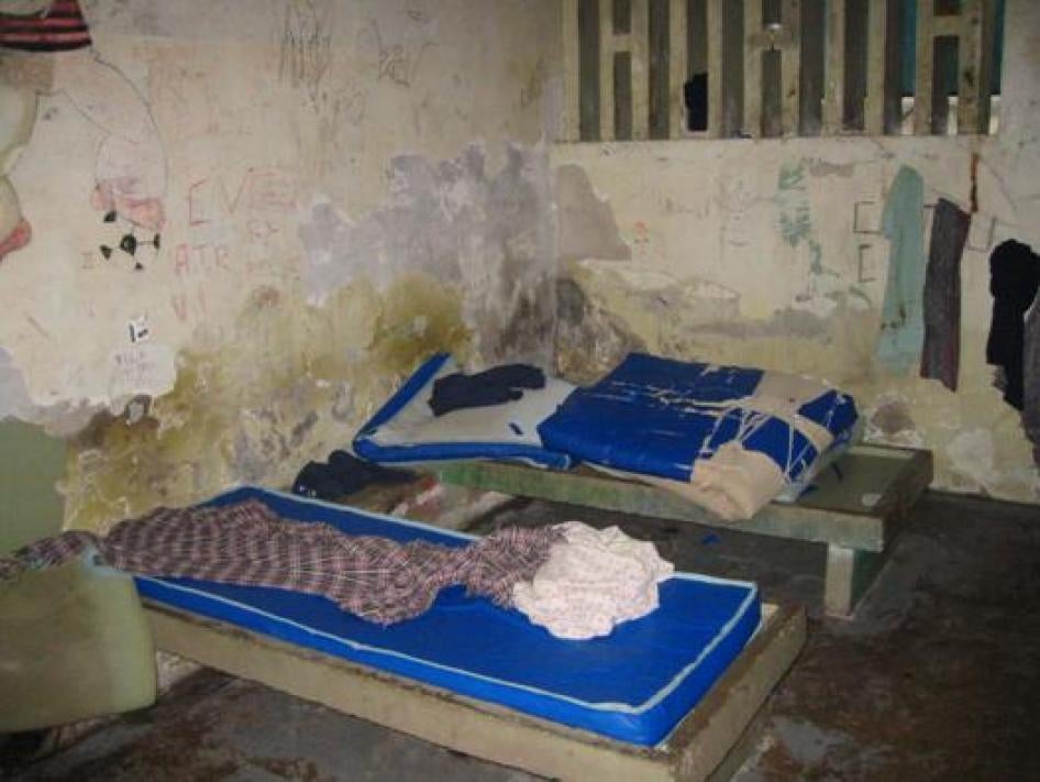 Juvenile detention centers in Rio de Janeiro are overcrowded, filthy, and violent, failing in virtually every respect to safeguard youths' basic human rights.  Beatings at the hands of guards are common.  "They beat us for any reason," said Dário P., an eighteen-year-old in the Centro de Atendimento Intensivo-Belford Roxo (known as CAI-Baixada).  "They'll come into the cells, and that's where they'll beat us."  He told us that guards hit him hard enough to leave him with a bloody mouth; once, he said, they hit him in the genitals.  "They'll call out your cell numbers-four, five, six!-and we have to undress [to be searched], and if we don't, they beat us."[1]