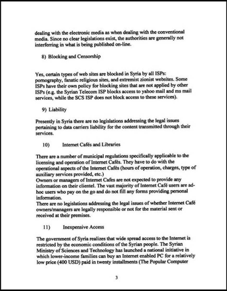 [320] Reporters sans frontières, The Internet Under Surveillance, 2004: Syria,http://www.rsf.org/article.php3?id_article=10767, accessed October 27, 2005.