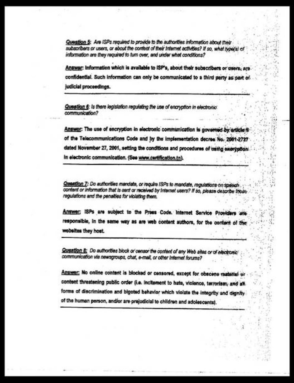 [362]Ligue Tunisienne pour la Défense des Droits de l'Homme, "Report on the Freedom of Information in Tunisia," http://www.iris.sgdg.org/actions/smsi/hr-wsis/ltdh03-press-en.pdf