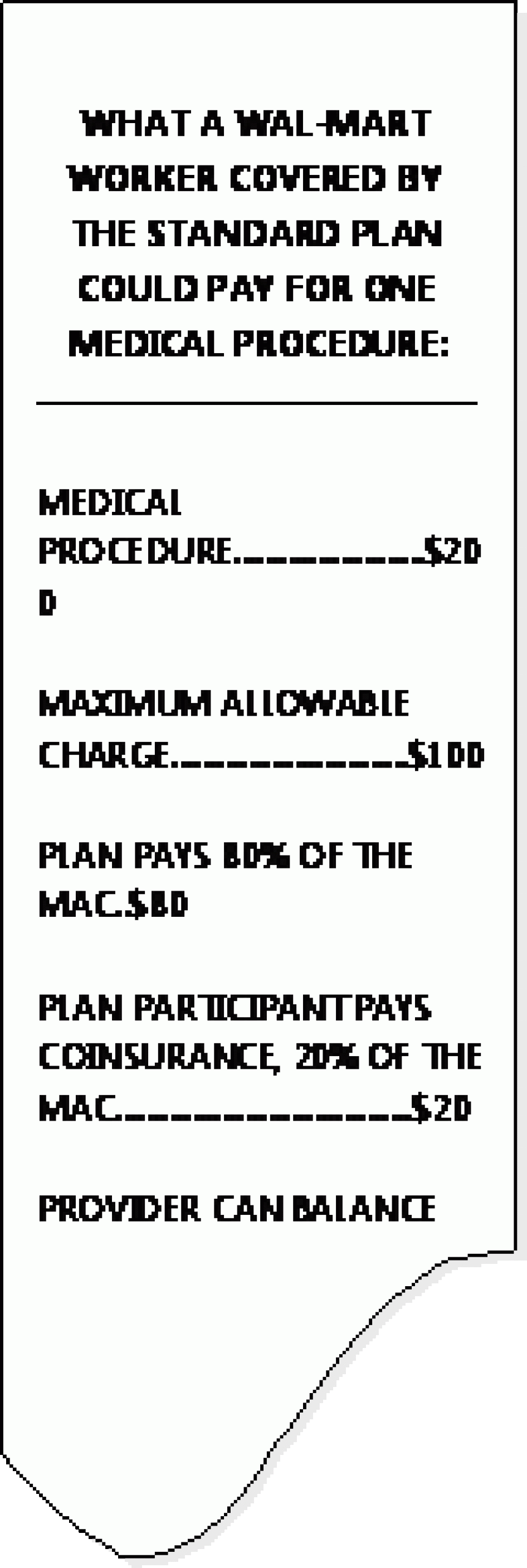 [932] Wal-Mart Stores, Inc., "My Benefits: Your 2007 Associate Benefits Book-Summary Plan Description," January 1, 2007, pp.30-31; Wal-Mart Stores, Inc., "2006 Associate Benefits Book: Summary Plan Description," January 1, 2006, p. 24; US DOL, BLS, "Definitions of Health Insurance Terms," February 2002, http://www.bls.gov/ncs/ebs/sp/healthterms.pdf (accessed December 4, 2006), pp. 1-2, 6.