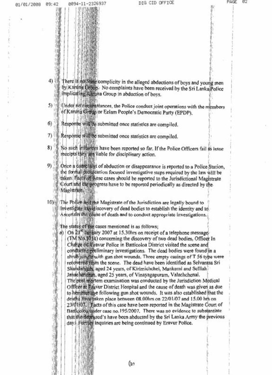 [286] Response to Human Rights Watch from the Human Rights Commission of Sri Lanka, by e-mail, January 24, 2008. The Human Rights Watch letter to the HRC and the Commission's response can be found in the Appendix II to this report.