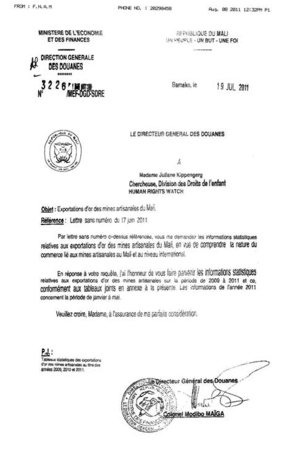 [387] Human Rights Watch interview with government official, Ministry of Mines, Bamako, March 30, 2011; Human Rights Watch interview with official from National Directorate for Mines, February 15, 2011.