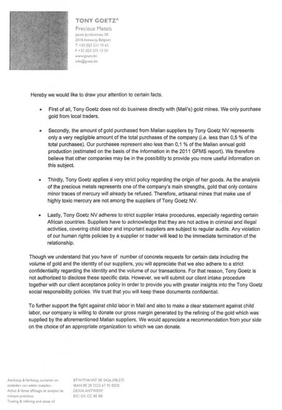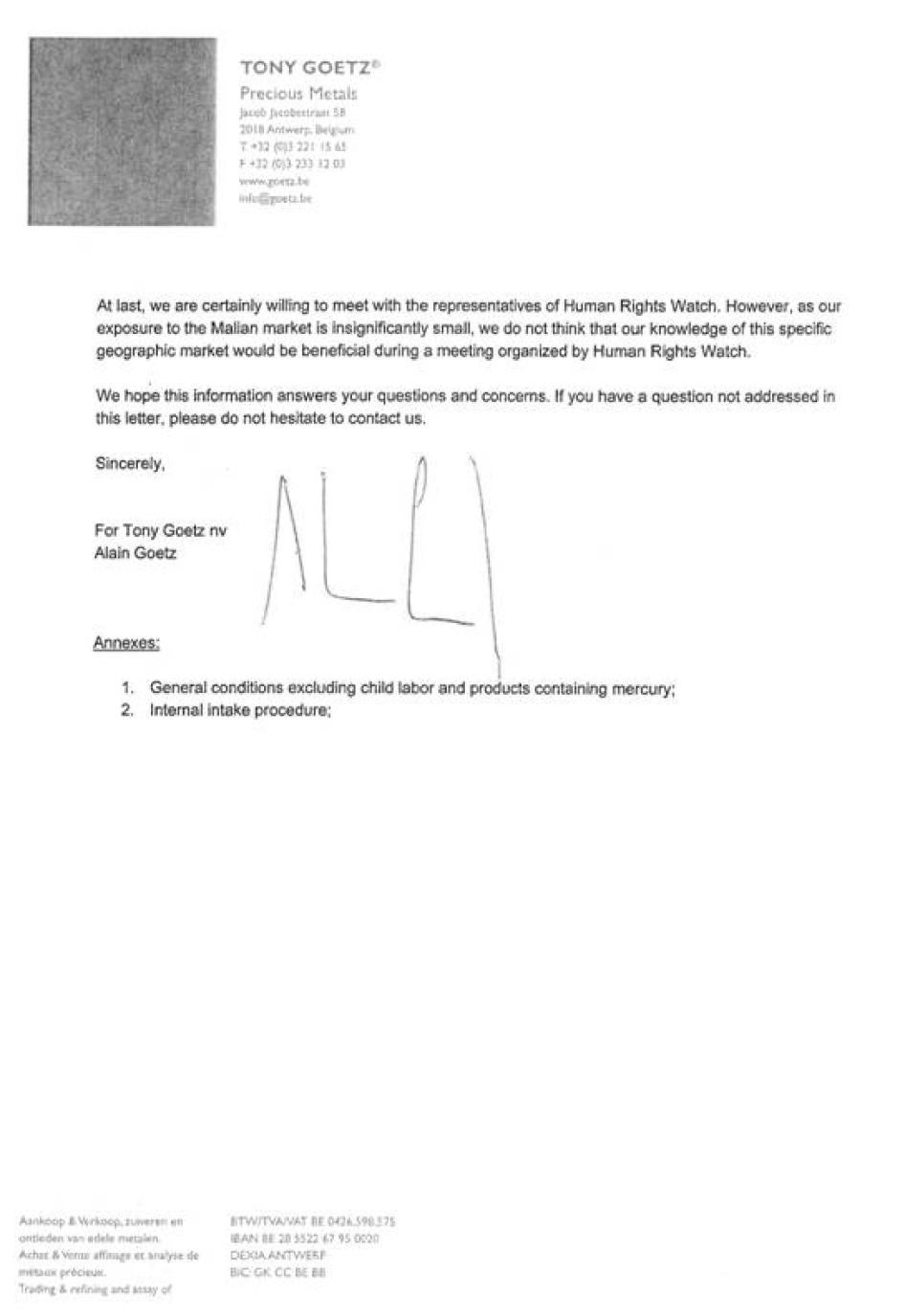 [375] See Annex IV, Letter from Tareq El-Mdaka, Managing Director, Kaloti Jewellery International DMCC, to Human Rights Watch, July 30, 2011.