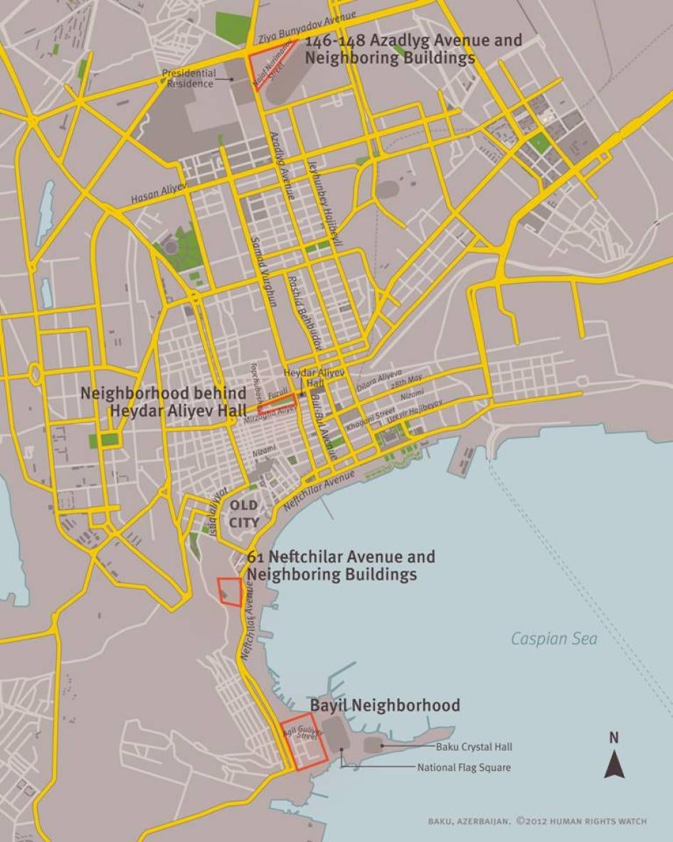 The findings of this report relate to these four areas only. Although expropriations and house demolitions have taken place in other areas in the city and in other parts of Azerbaijan, Human Rights Watch is not in a position to assess the conditions and terms on which those precise expropriations took place.