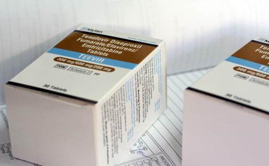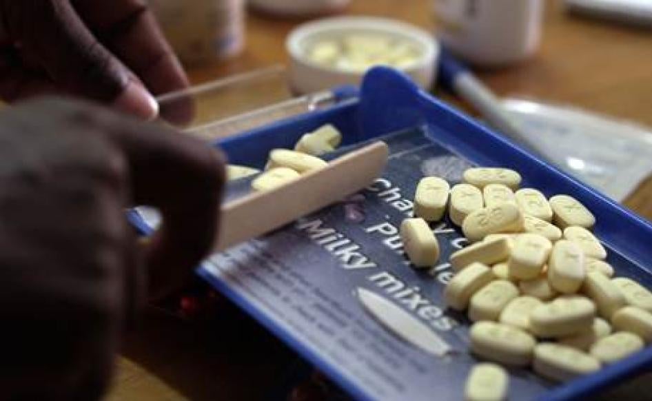Antiretroviral drugs, like those pictured here, often do not have Braille symbols, making it difficult for blind people to identify various medications. © 2014 Justin Purefoy for Human Rights Watch