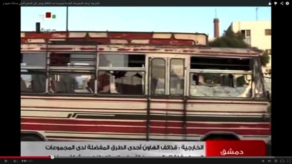 [263] “Homs, Selling of pro-government neighborhood in response to the shelling of the Waer neighborhood with massive civilians presence- Liwa al-Haq,” September 14, 2013 video clip, YouTube, https://www.youtube.com/watch?v=4Qp0SRQRrzE (accessed March 5, 2015).