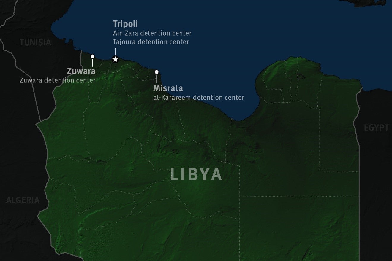 In July 2018, Human Rights Watch researchers visited four detention centers in Tripoli, Misrata, and Zuwara where they documented inhumane conditions that included severe overcrowding, unsanitary conditions, poor quality food and water that has led to malnutrition, lack of adequate healthcare, and disturbing accounts of violence by guards, including beatings, whippings, and use of electric shocks.