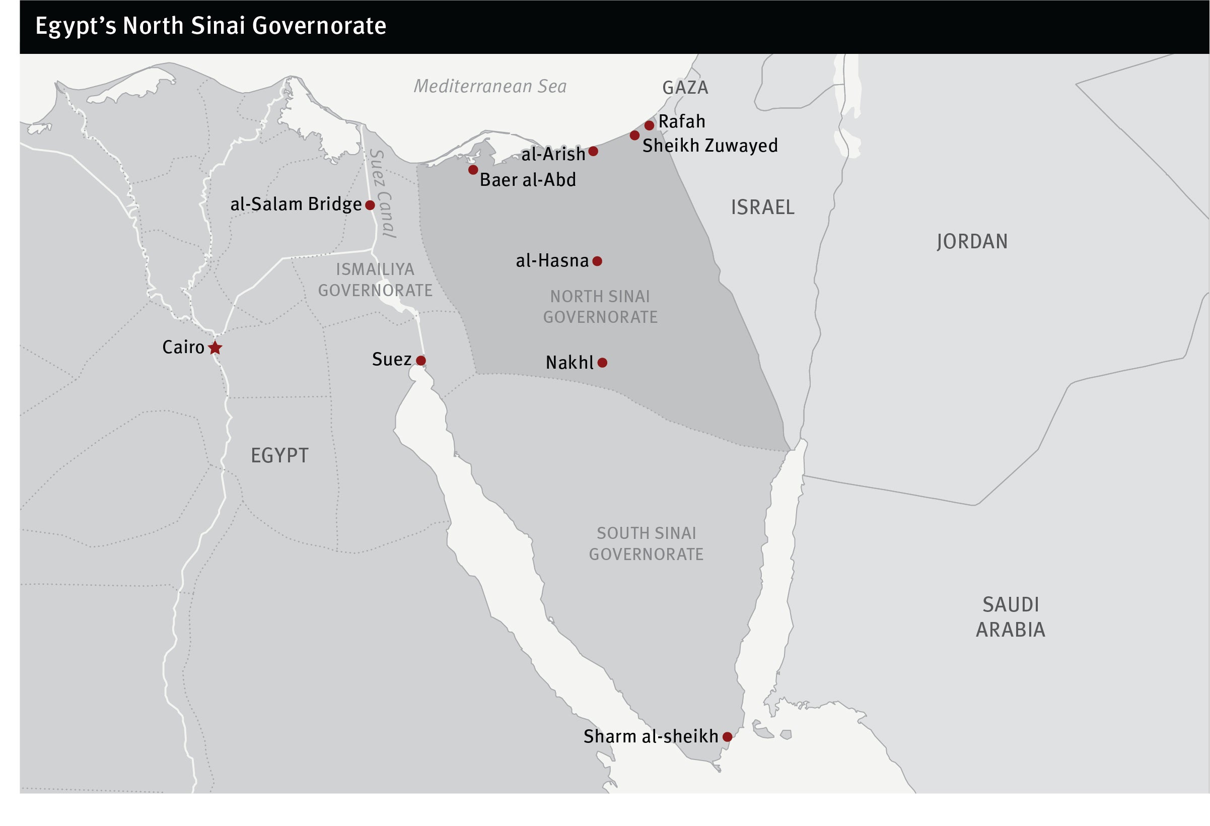 The conflict in North Sinai escalated dramatically after July 2013, when then-Defense Minister Abdel Fattah al-Sisi ousted President Mohamed Morsy, a top Muslim Brotherhood official who had taken office the year before. Since Morsy’s removal, which prompted nationwide unrest and a brutal response from the army and police, the government has mobilized tens of thousands of soldiers in the area and used heavy weapons, naval vessels, and military aircraft. It has also imposed a state of emergency and a curfew in most of North Sinai, which quickly became the site of frequent attacks on the military and police.