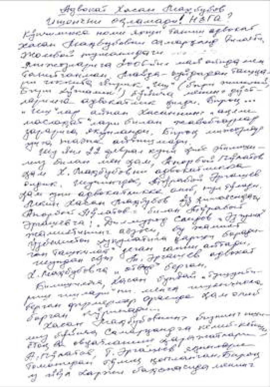 [390] Интервью Хьюман Райтс Вотч по телефону с Суратом Икрамовым. Ташкент, 29 января 2014 г.