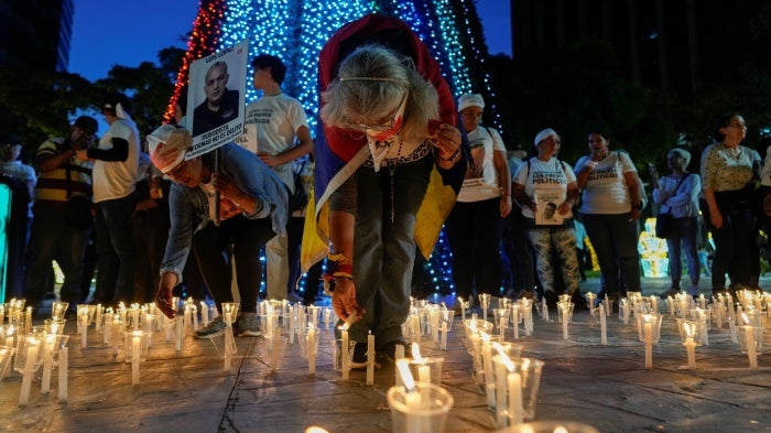 Relatives of political prisoners light candles during a vigil calling for their freedom in Caracas, Venezuela on Sunday, December 1, 2024.